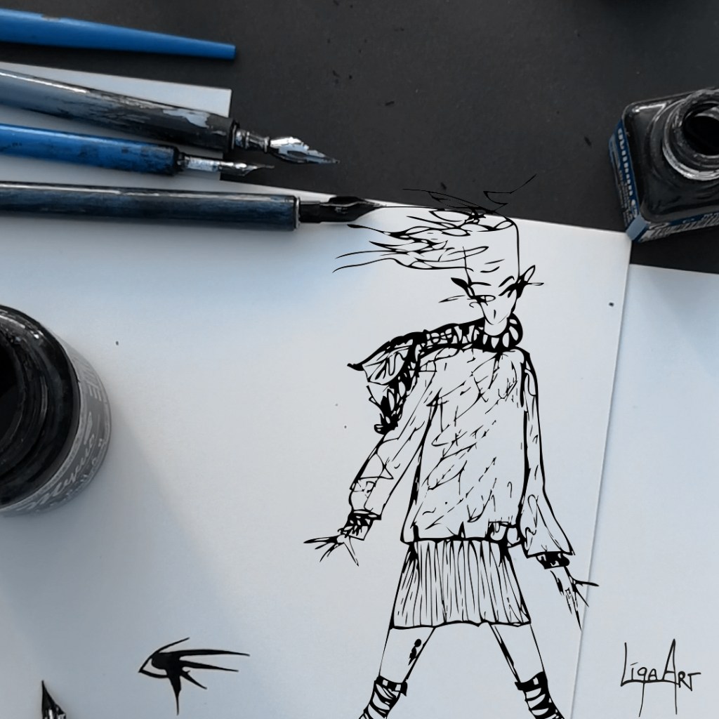 Meine Kunst umfasst ausdrucksstarke Tuschezeichnungen und virtuelle Street- Art, mit denen ich Emotionen einfange und neue kreative Welten erschaffe.